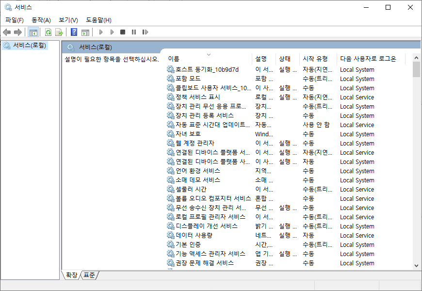 - 수동 : Windows 가 시작되어도 자동적으로 실행되지 않는다. (직접 수동 실행)